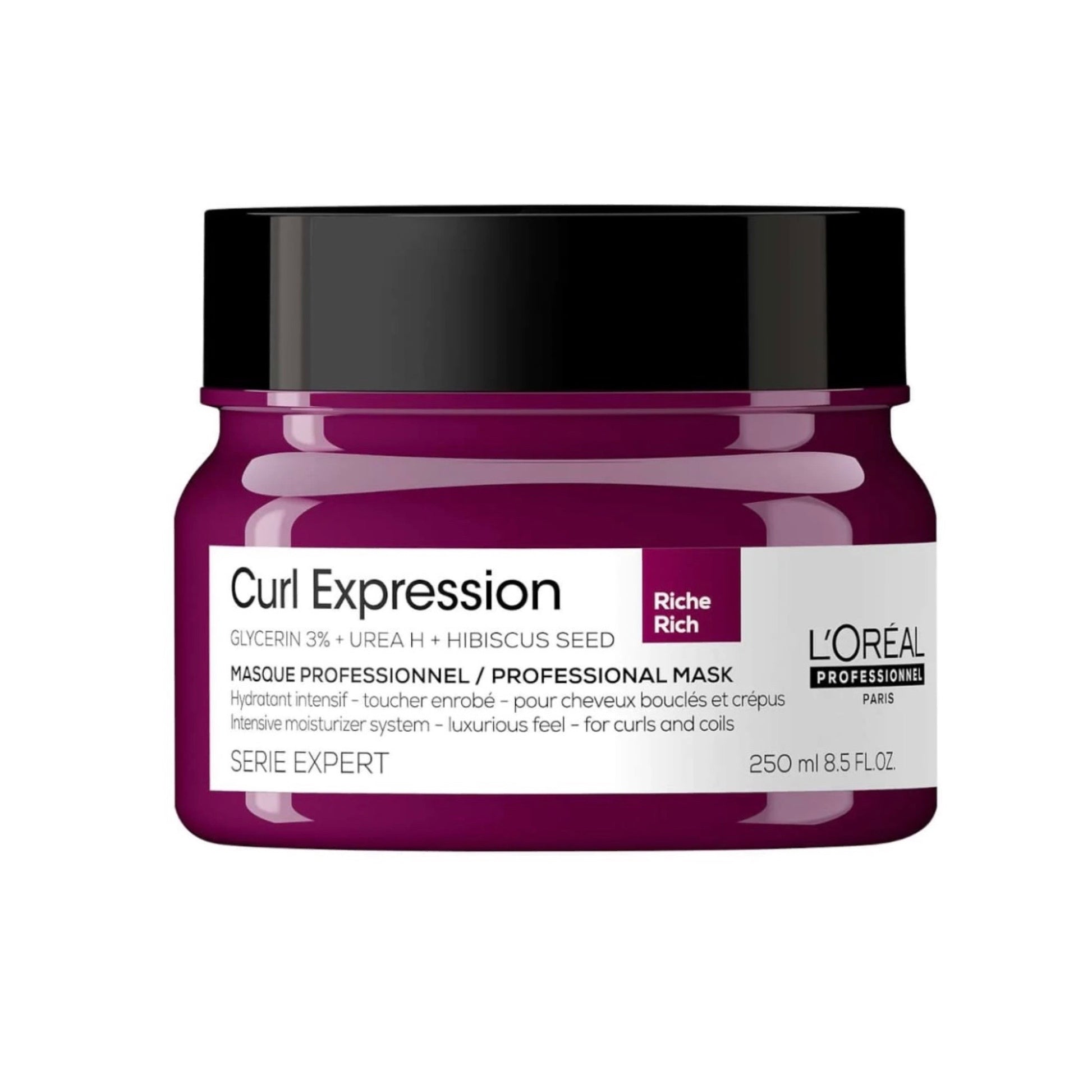 Mascarilla con formula profesional hidratante rica intensiva diseñada para tratar crespos y rizos de manera pro. Pre-desenreda los crespos y rizos para un cabello uniforme y controlado con un sentimiento de lujo. Con una infusión de glicerina de origen vegetal al 3 %, esta composición promete retener el agua y, así, garantizar una hidratación profunda y duradera. Además, especialmente indicada para rizos rebeldes, Curl Expression Rich Mask también recurre a la Urea H para reforzar la barrera hidrolipídica y a la Semilla de Hibisco por su alto contenido en aminoácidos y vitaminas de alto grado.