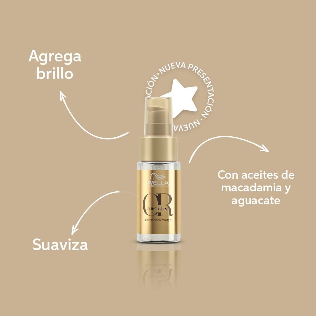 Aplica una pequeña cantidad del OIL en el cabello seco o mojado, de medios a puntas, y peina el cabello. Úselo en el cabello seco para ayudar a suavizar y reducir el frizz, así como para proteger el cabello de factores ambientales y otros. Complemente la rutina con la linea oil reflections de wella.